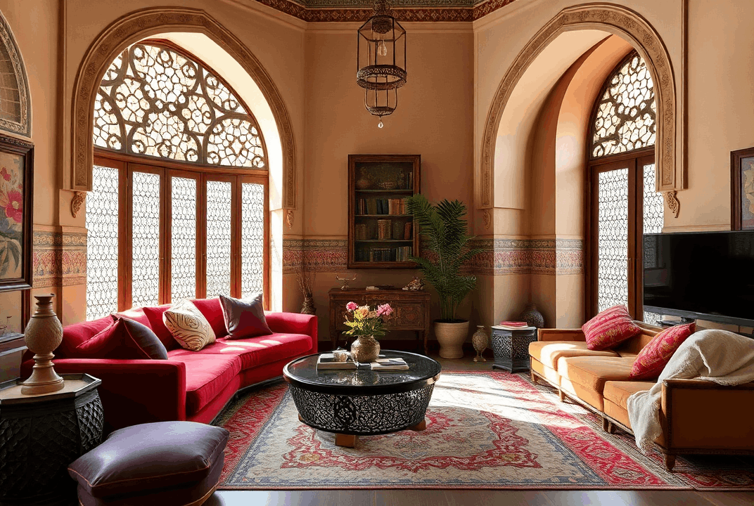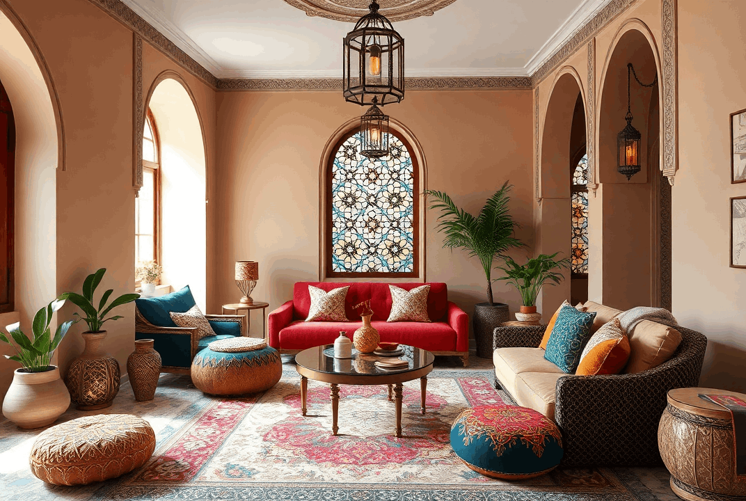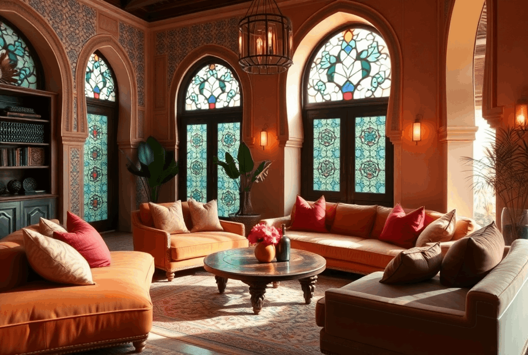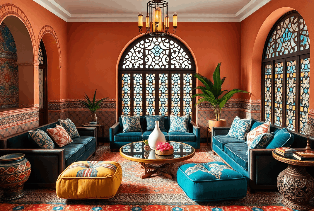 • השראה: השילוב הייחודי של סגנונות ברברי ואיסלמי יוצר סגנון מאוד ייחודי. סגנון זה ידוע בצבעיו העשירים, בדפוסים המורכבים ובנגיעות האקזוטיות שלו. לעיתיםקרובות הוא כולל אריחים צבעוניים, פתחים מקושתים, פנסים מעוטרים ופינות ישיבה מפוארות.